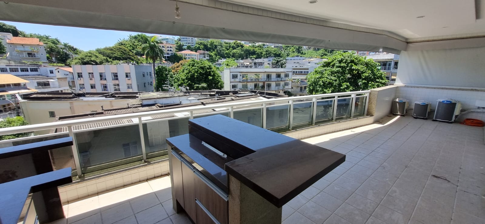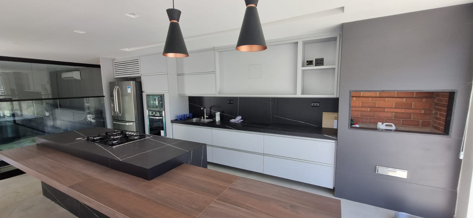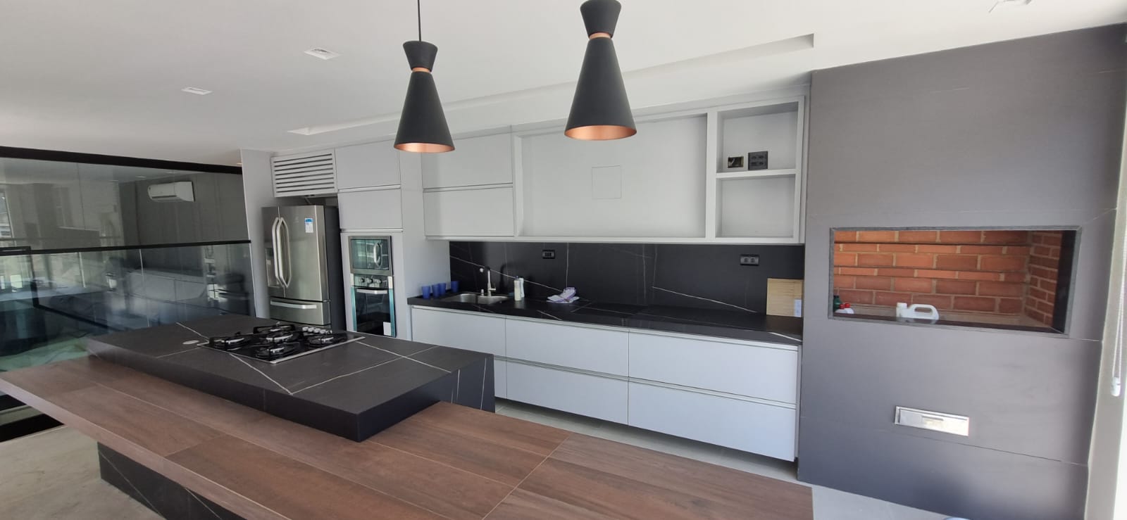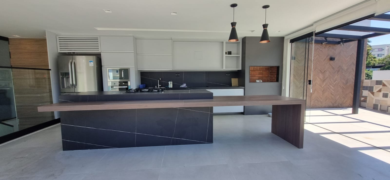 A cobertura é duplex, nova e pronta para moradia. Os dois andares foram projetados com área gourmet. Isto é, você terá um ambiente climatizado com televisão e espaço gourmet na varanda do primeiro piso; assim como, uma espaço lindíssimo com fechamento em vidro, com uma cozinha completa para atender o andar superior e área externa com piscina.