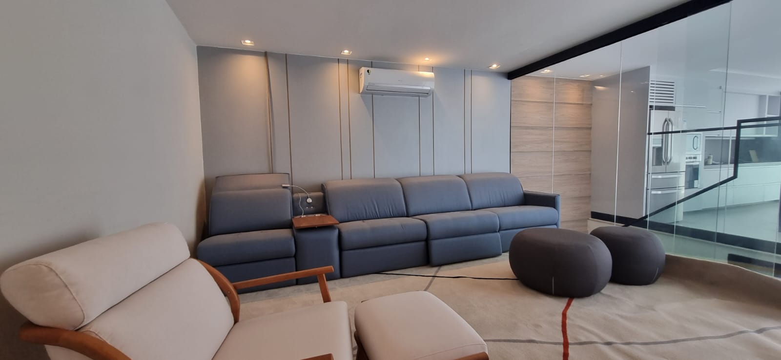 Construída em 2018, esta cobertura conta com uma área total de 400,00 m² e uma área privativa de 300,00 m². Seu acabamento é de alto padrão, com móveis planejados em todos os cômodos, ar condicionado e portão eletrônico. Além disso, possui um SPA com hidromassagem, perfeito para relaxar após um longo dia de trabalho.
